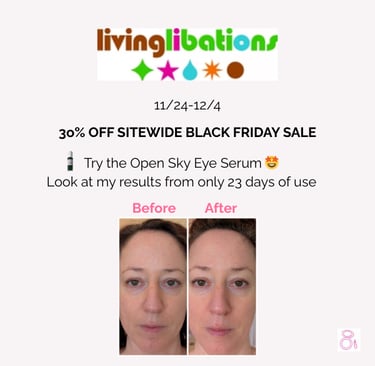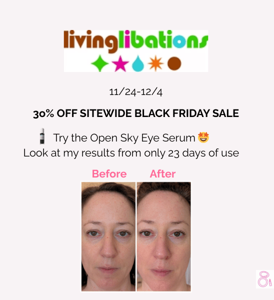 I am sooo excited about Living Libations!! Not only because every ingredient list is pristine and teeming with well-formulated actives - last month I started using Open Sky in my never-ending quest to help brighten my under-eye circles, and I am overjoyed at the results - LOOK! ➡️